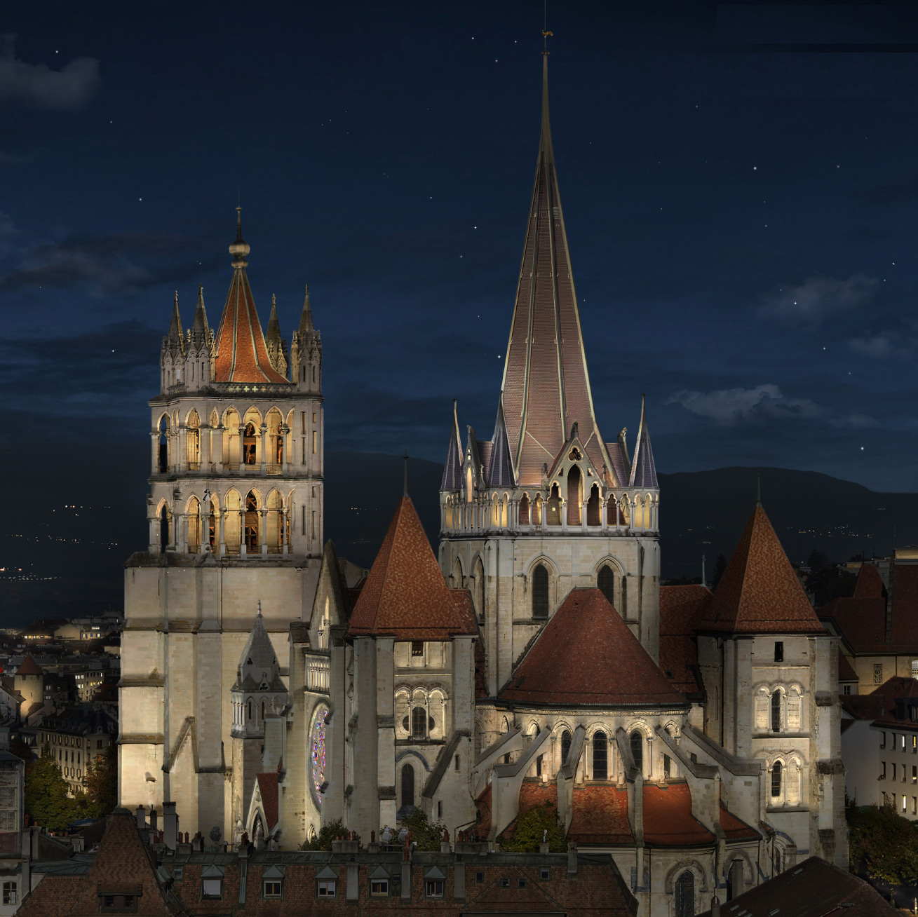 « Nouvelle robe de lumière pour une vieille Dame de pierre », un texte inédit lu sur l’Esplanade de la cathédrale de Lausanne pour l’inauguration du nouvel éclairage extérieur, accompagné par le guitariste Stéphane Blok.